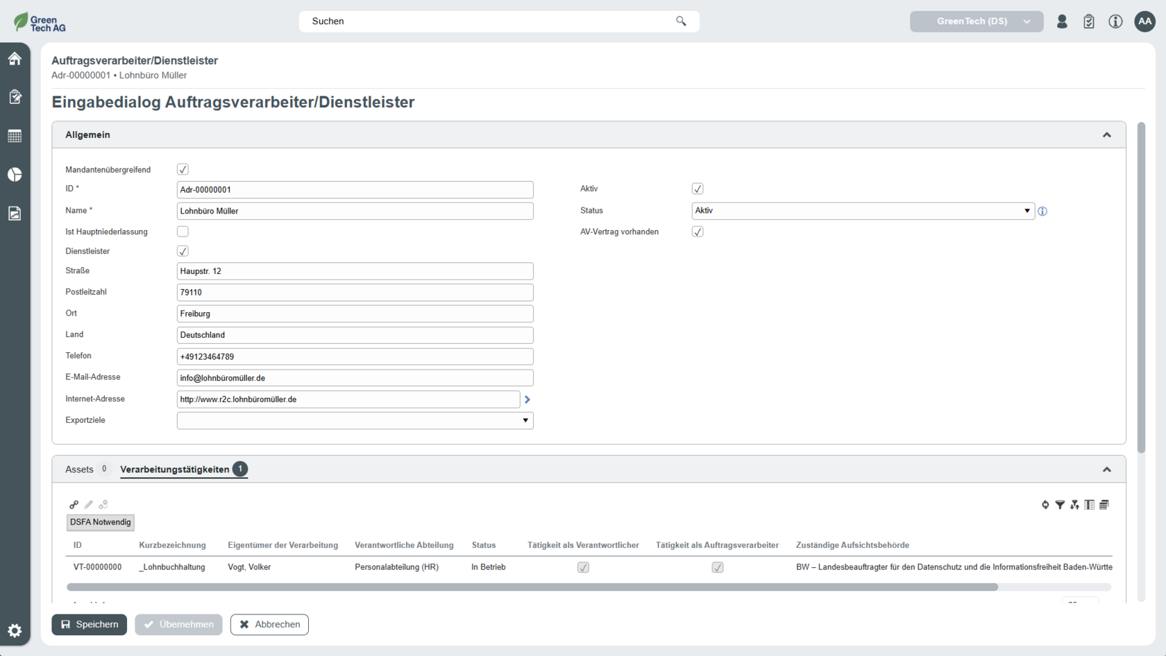 Die Eingabemaske für die Verarbeitungstätigkeiten kann flexibel um kundenindividuelle Eigenschaften erweitert werden (Customizing).